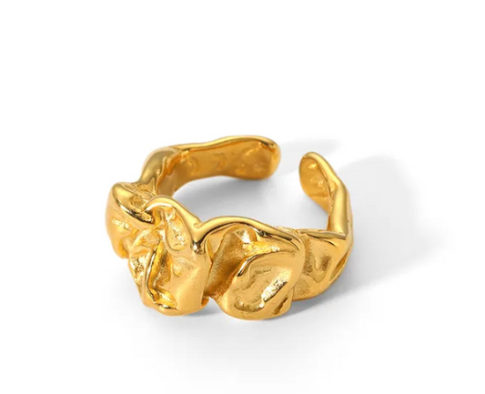 Anillo de Pliegues Dorados o Plateados Ajustables en Acero Inoxidable Pulido Chapado En Oro De 18K