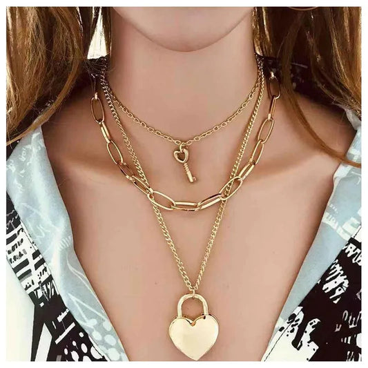 NUEVO - Collar Corazón Candado Dorado con Llave de 50 cm.