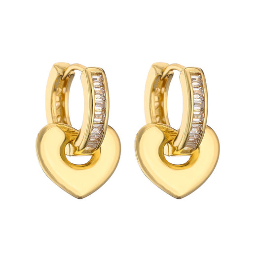 NUEVO - Candongas de Circón con Corazón Chapado en Oro 18K
